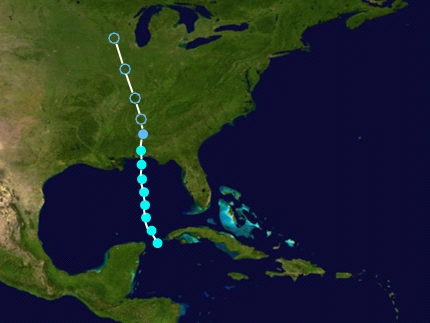 In late August, a tropical wave exited the African coast. Due to interaction with Tropical Storm Josephine, the system struggled to develop. Despite Josephine being nearby, the system was named Tropical Storm Kyle on September 5 west of the Lesser Antilles. Kyle did not intensify much for the next two days. However, on September 8, Kyle was upgraded to a hurricane due to a wind speed of 75 mph observed by a Hurricane Hunters aircraft. Kyle then underwent rapid intensification the next day on September 9, becoming a major hurricane will passing east of the Yucatan Peninsula. As Kyle passed over the Yucatan, it weakened to a high-end category 2 hurricane. However, after Kyle passed the Yucatan, Kyle entered an area with no wind shear and water temperatures of 90 degrees Fahrenheit. Rapid intensification resumed, and Kyle's winds explosively deepened to 175 mph, becoming the second category 5 of the season. Kyle acquired its peak intensity on September 11, before it weakened to a category 4 just before landfall in Texas. Kyle then weakened rapidly after landfall on September 12, becoming extratropical on September 13 and dissipating on September 14. Kyle caused catastrophic damage in the state of Texas, causing 868 fatalities between Texas and the Yucatan Peninsula as well as $95 billion in damage - becoming the second-costliest Atlantic hurricane on record. Kyle was the costliest and deadliest storm of the season.