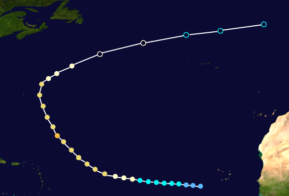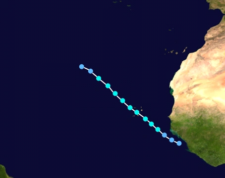 On December 18, a tropical wave exited the African coast. Due to record warm waters and unusually low wind shear, the NHC began monitoring the system for development, giving it a 20% chance of development within the next 5 days. Surprisingly, on December 20, the system rapidly became Tropical Depression Twenty-Three. The next day, Twenty-Three was upgraded to Tropical Storm Beta. On December 22, Beta rapidly intensified into a category 1 hurricane. Beta became an annular hurricane late that night and changed little in intensity over the next several days. Beta acquired its peak intensity early on December 25 - Christmas Day - with maximum sustained winds of 90 mph, nearly becoming a category 2 hurricane. Beta began to weaken on December 26, and became a tropical storm on December 27. Beta then became post-tropical on December 28.