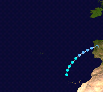 | Edouard | July 18 – July 21 | Tropical storm | 60 (95) | 996 | Azores, Canary Islands, Iberian Peninsula (Spain, Portugal) | Minimal | None |