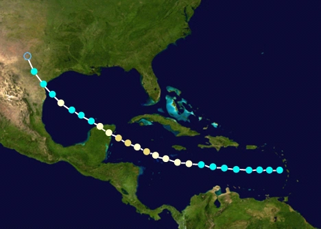 | Teddy | October 24 – November 3 | Category 5 hurricane | 195 (315) | 880 | Lesser Antilles, Caribbean Islands, Yucatan Peninsula, United States Gulf Coast, Midwestern United States | $15 billion | 74 |