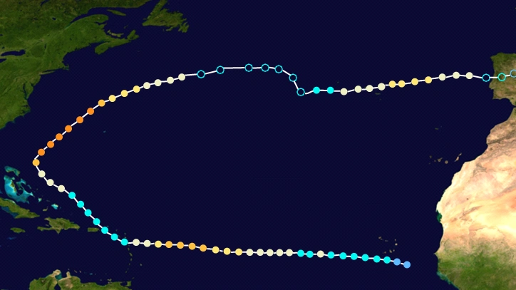 | Josephine | September 3 – September 30 | Category 4 hurricane | 155 (250) | 927 | Cape Verde, Lesser Antilles, Bahamas, United States East Coast, Bermuda, Azores, Spain | $5 million | None |
