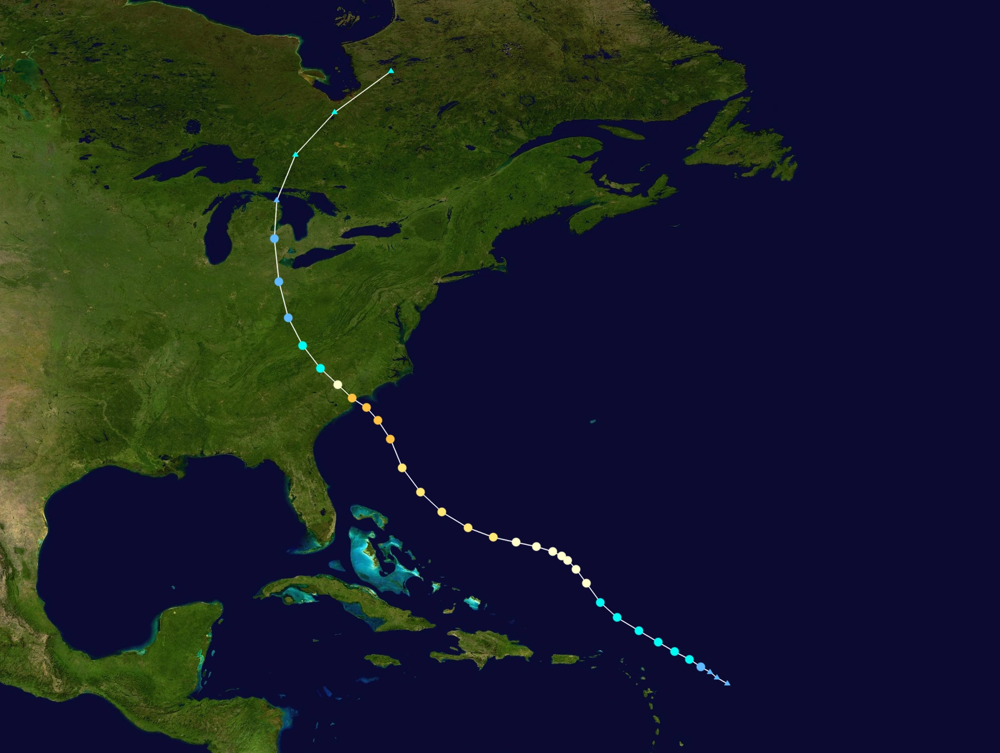 | Colin | September 3 – 10 | Category 3 hurricane | 115 (185) | 962 | Windward Islands, The Bahamas, Southeastern United States | $8.74 billion | 46 (8) | |||
