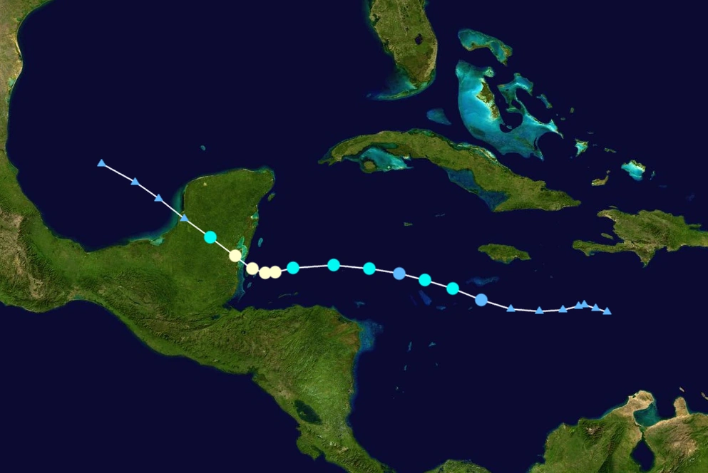 Danielle, moving northwest slowly, took direct aim for Belize City while peaking. At around 12:00, Danielle gained a peak intensity of 80 mph and a minimum pressure of 987 mbar. Late on September 7, Danielle made landfall on Turneffe Atoll before making landfall near Belize City at peak intensity, shortly after. Once inland, Danielle's appearance worsened greatly, gaining an exposed center once again while weakening. By early September 8, Danielle was a low-end tropical storm, having rapidly weakened overnight and shortly after, became a remnant low as all convection diminished, leaving a large swirl of the peninsula. Danielle's remnants continued into the Bay of Campeche, where later made landfall on Mexico on September 10 before dissipating fully. Danielle brought high storm surge, not too high, though the Turneffe Atoll had been submerged for at least a month. Multiple trees were downed, most of them falling on top of houses with people on them. Multiple shelters were flooded, though most of them were near rivers in Belize City. In total, Danielle caused $65.742 million in damages, along with 11 deaths and 3 indirect deaths. There were also four injuries, mostly from people getting caught in flooded rivers.