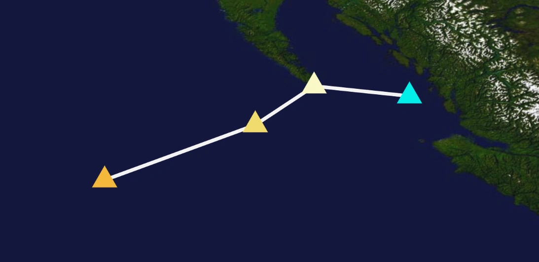 Around midday on May 31, a cyclone began to form in the Gulf of Alaska. In the next JXCA advisory, the storm was forecasted to move just north of Oregon, not affecting it at all. Therefore, the system remained unknown. However, over the course of the next few days, the system's path would change, forming a new center closer to Vancouver Island. The system began dropping rain over most of Oregon, and the system was named Kinsley, becoming the first named system in over a month. Overnight, the system began to slow down, nearly stalling nearby Vancouver Island, and at 17:30 UTC on June 3, Kinsley made landfall near the town of Hesquiaht on the island. As soon as Kinsley impacted the island, it rapidly weakened, and by the next advisory, Kinsley was officially marked as dissipated.