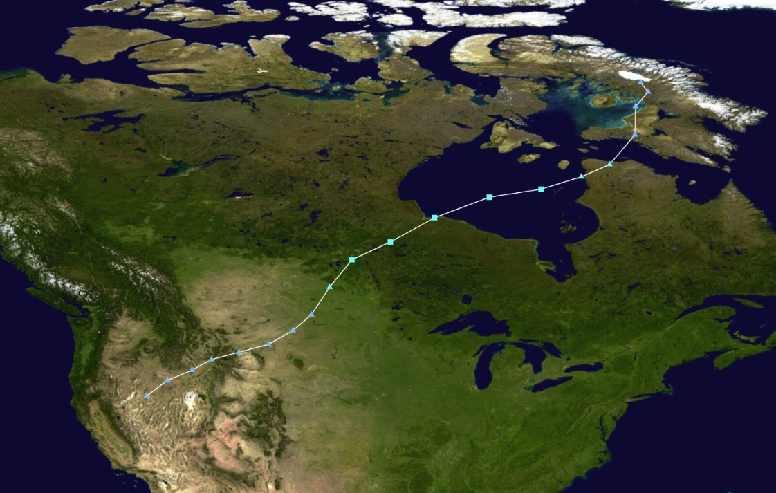 On October 14, a low originated off the coast of Alaska and quickly swept across Yukon and the Northwest Territories, producing heavy snow and wind gusts up to 50 mph (80 km/h). Accumulating snow upwards of 6 to 10 inches (15 to 25 cm), as estimated by the Weather Prediction Center, was seen in parts of the Northwest Territories on October 15. The WPC designated the system as Potential Winter Weather Event One the afternoon of October 16 as the storm strengthened to its maximum intensity of 998 mbar (29.47 inHg) with gusts of 45 mph (70 km/h) and attained a very organized structure. Snowfall rates decreased as the system moved east toward the Hudson Bay. On October 17, the system dissipated over the central bay.