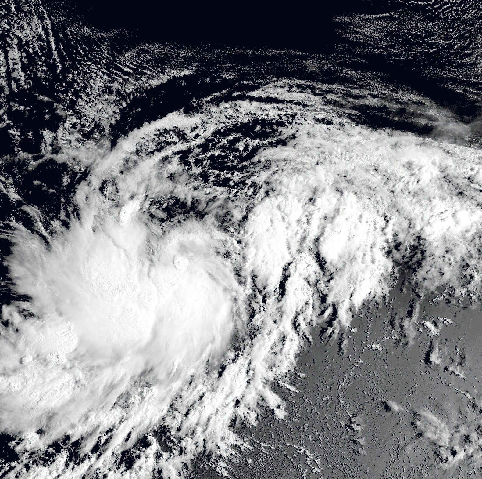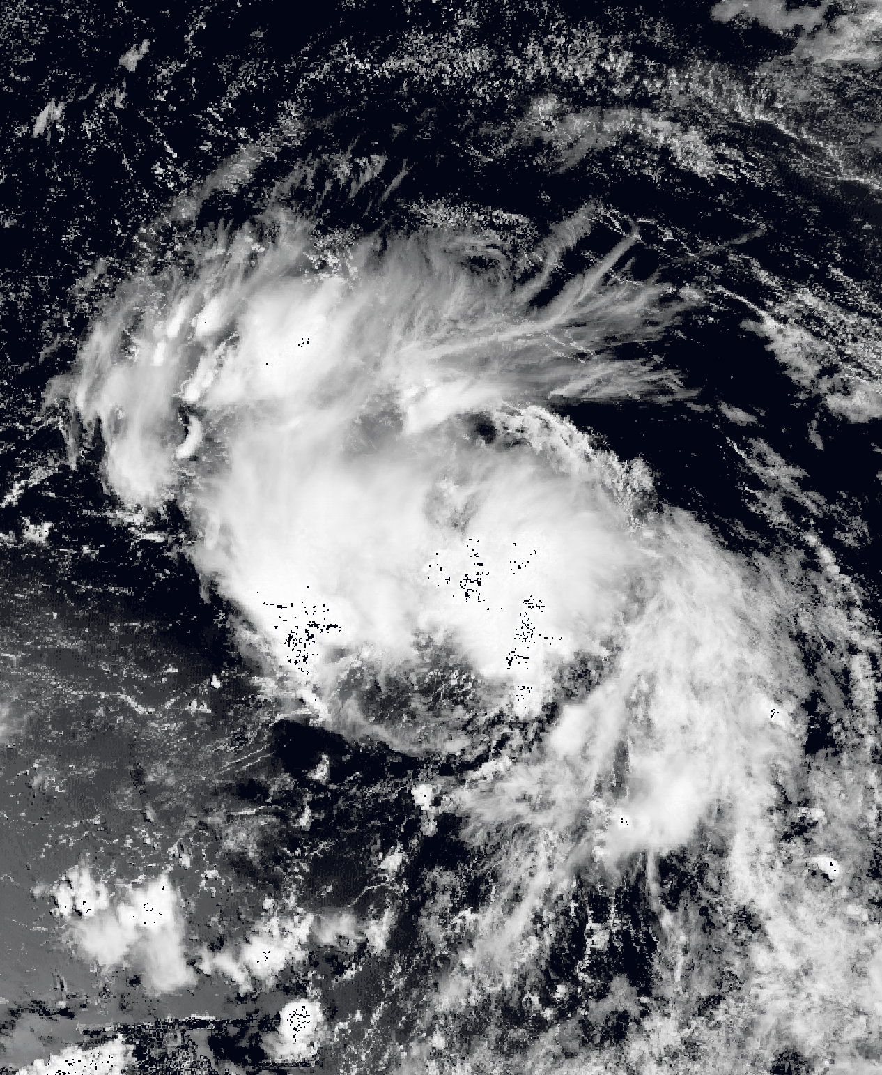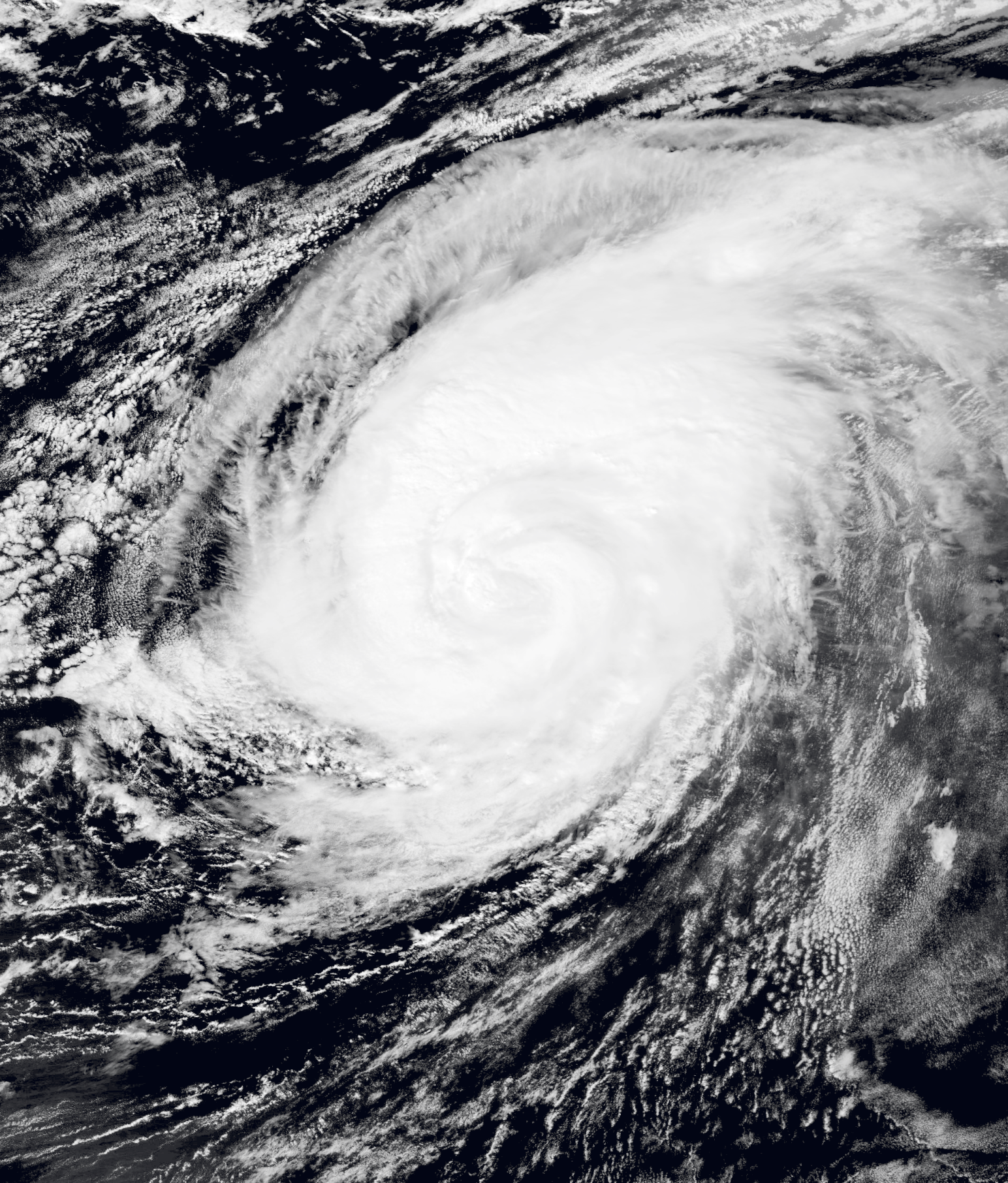 An organized tropical wave moved into the eastern Atlantic on October 1, gradually developing shower and thunderstorm activity as it tracked westward. The wave developed into a tropical depression early on October 3, intensifying into Tropical Storm Melissa the next day. Unfavorable conditions prevailed as it moved westward, hindering initial strengthening as the storm's center remained displaced near the northeastern edge of its convection. Late on October 5, Melissa's cloud tops began cooling, and the cyclone organized significantly, allowing Melissa to intensify into a hurricane the next day. Approaching the Lesser Antilles, Melissa continued intensifying and reached Category 3 intensity on October 7 at 12:00 UTC. However, immediately afterwards, the system encountered a high-pressure system over the Leeward Islands and began an eyewall replacement cycle, weakening into a Category 2 hurricane the next day as it curved to the north. The storm's convection became slightly disorganized over the next day, but soon entered warmer waters, re-intensified into a Category 3 hurricane on October 9 at 12:00 UTC, and turned to the west-northwest. As the cyclone's center became much more organized and its convection increased, it intensified into a Category 4 hurricane and soon peaked as a Category 5 hurricane on October 10 with winds of 165 mph (270 km/h). The storm soon weakened into a Category 4 hurricane on October 11 and began approaching North Carolina. At 19:30 UTC (3:30 pm EDT) on October 12, Melissa made landfall south of Southport, North Carolina, with sustained winds of 130 mph (210 km/h) and a central pressure of 931 mbar (27.5 inHg). The storm moved inland and began rapidly weakening, falling below hurricane intensity just twelve hours later. The storm continued north over the eastern United States before transitioning into an extratropical cyclone over New York on October 14. Its remnants persisted for roughly two days before dissipating in the Labrador Sea late on October 15.
