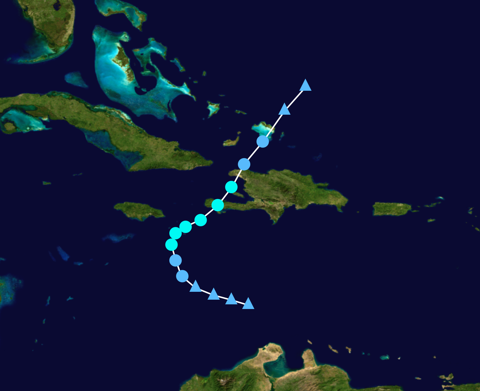 A non-tropical low moving through the eastern Caribbean was monitored for possible development during the second-to-last week of the official hurricane season. It initially had a low chance of development, but on November 20th it quickly coalesced and began to exhibit tropical characteristics. Eventually, it became officially designated a tropical depression at 09:00 UTC on the following day. It moved northward and slowly intensified due to marginally favorable conditions, becoming a tropical storm 12 hours afterwards. Named Alpha, this was the first and only time in recorded history that both the original and auxiliary naming lists were exhausted, and for the Greek letter naming system to be reinstated for any future tropical cyclones in the season. Alpha, as a minimal tropical storm, had a very slow forward motion as it crawled towards Haiti. This contributed to severe flooding there and in Jamaica. It accelerated somewhat and turned northeast, showing steady deterioration in structure as it struggled to produce sufficient convection. Alpha then made a direct hit over Dépas, Côteaux, Haiti and moved northward as its structure became increasingly ragged. It made a very close pass to Gonâve Island and later struck Anse-Rouge as a weakened tropical depression. After emerging, Alpha made its third and final landfall over East Caicos, located in the Turks and Caicos Islands. The storm became an extratropical cyclone soon afterwards as its center became embedded in a front.