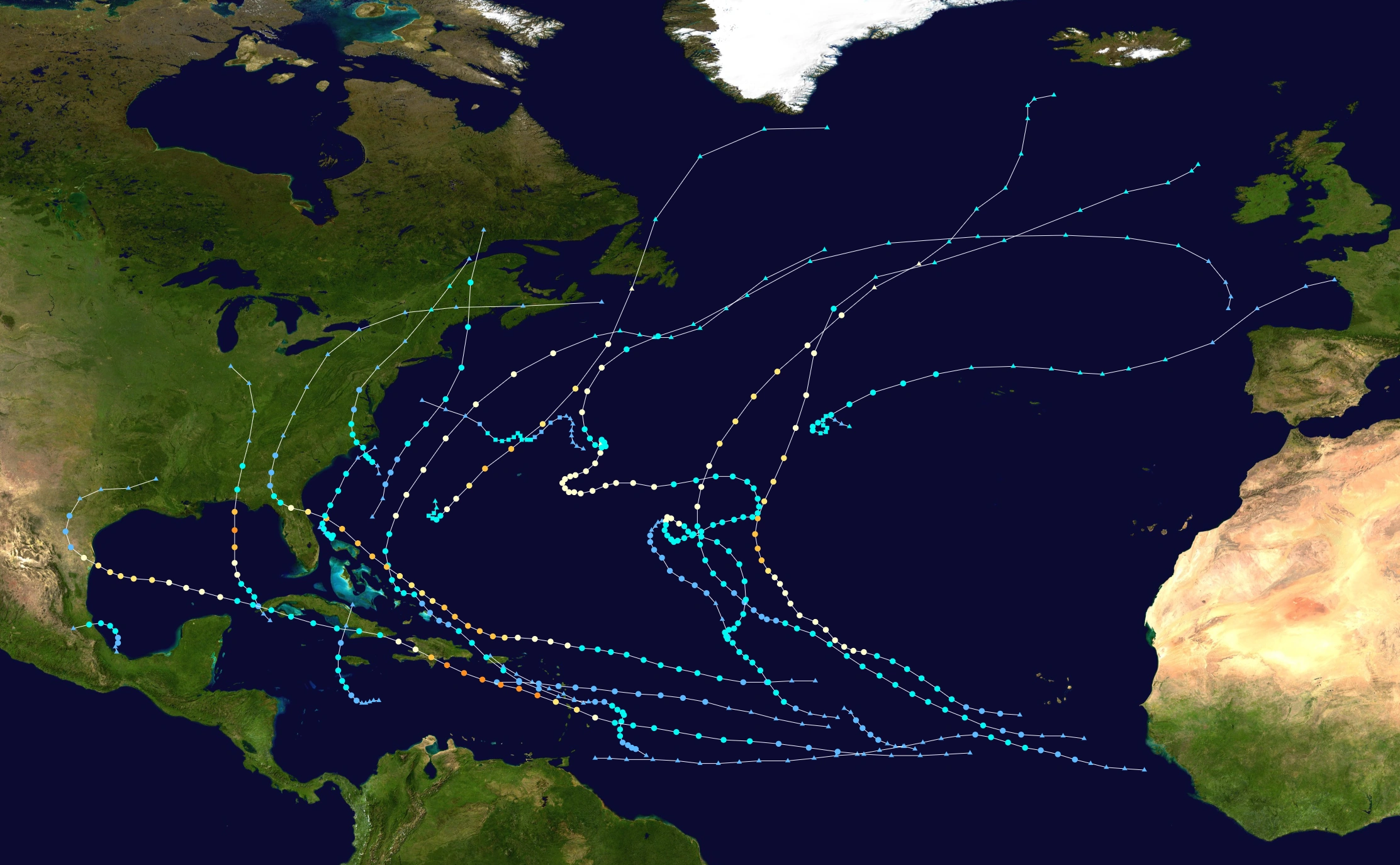 | Clara | August 14–23 | Category 3 hurricane | 120 | 950 | Lesser Antilles, Lucayan Archipelago, southeastern and northeastern United States | $3.6 billion | 9 | |||