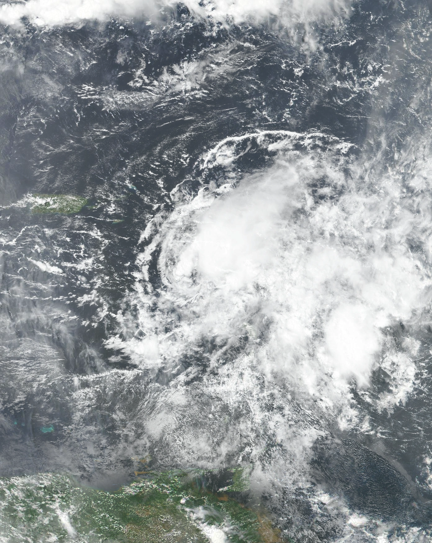 On October 7, a tropical wave interacted with a shortwave trough over the eastern Caribbean Sea, spawning an area of low pressure. The low drifted westward and began to display signs of organization on October 9. The following day, organization increased enough for the low to be upgraded into a tropical depression. The depression turned northwestward and intensified further into Tropical Storm Patrick later that day. Patrick had a short window for intensification before wind shear was forecast to increase substantially. As Patrick moved northwestward, it intensified and attained its peak intensity with winds of 45 mph and a barometric pressure of 1004 millibars early on October 11. Wind shear increased substantially just hours later, inducing quick weakening as the storm turned northward. Patrick passed just west of Jamaica on October 11 as a weakening tropical storm and curved northeastward. Patrick weakened into a tropical depression hours later, and later degenerated into a remnant low as it moved inland over Cuba. The remnants continued northeastward over Cuba, passing over the southwestern Atlantic Ocean before dissipating the following day.