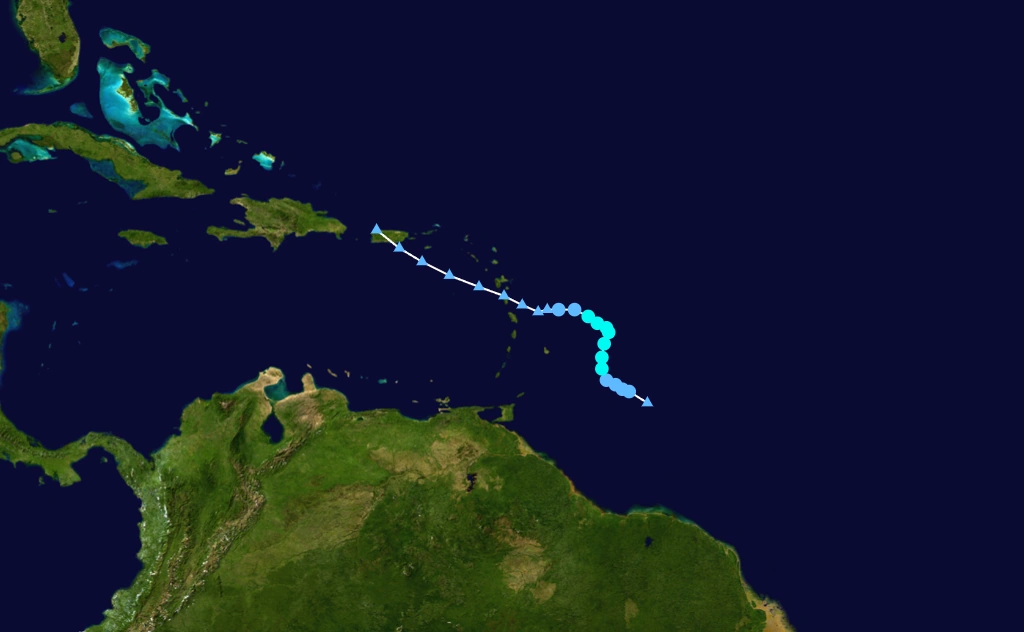 On May 31, a tropical wave exited the west coast of Africa. The wave tracked westward over the next week, with dry air and moderate wind shear limiting significant development for much of this time. On June 5, organization began to drastically increase unexpectedly, and the next day, it was upgraded into the first tropical depression of the season. Wind shear continued to afflict the depression as it moved very slowly westward during the next 24 hours. Despite continued wind shear, the depression was able to intensify into Tropical Storm Astrid, the first tropical storm of the season. Astrid turned northward on June 7 through a break in the subtropical ridge, with wind shear relaxing somewhat to allow for additional intensification. On June 8, Astrid attained a peak intensity with winds of 60 mph and a barometric pressure of 996 millibars, making it one of the strongest systems on record in the main development region during the month of June. After reaching its peak intensity, Astrid encountered an area of very strong wind shear, inducing a quick weakening trend. Astrid turned westward once again as ridging became established once again, pushing it further into an unfavorable environment. On June 9, Astrid fell below tropical storm strength as deep convection became increasingly displaced from the low-level center of circulation. Later that same day, Astrid degenerated into a remnant low after it failed to redevelop deep convection. The remnant low persisted west northwestward for the next few days, entering the Caribbean Sea on June 10 and ultimately crossing Puerto Rico before dissipating.