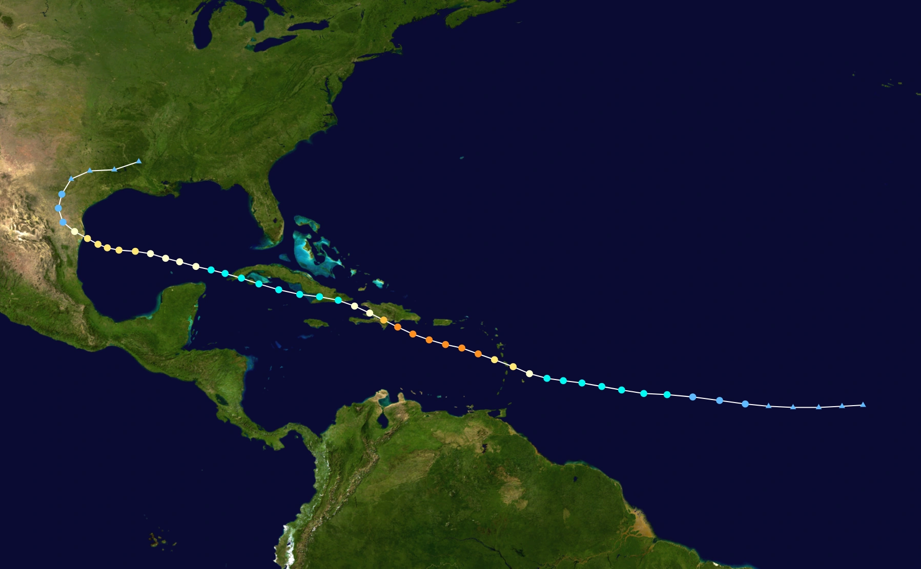 | Jerry | September 14–24 | Category 4 hurricane | 155 | 928 | Leeward Islands, Hispaniola, Cuba, Mexico, Texas | $5.4 billion | 345 | |||