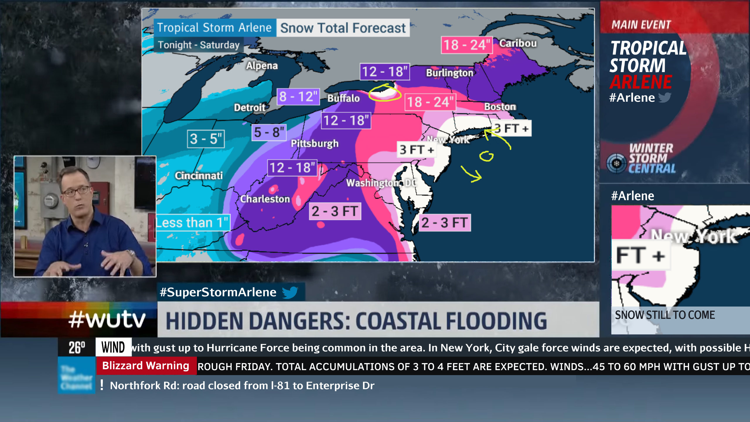 On January 07th, 05:00 PM, Arlene was downgraded to a Tropical Depression, then to be upgrade a day later back to a Tropical Storm. On that same day, Winter Storm and Blizzard Warnings were issued all across the states from North Carolina to Maine with record breaking snowfall amounts forecasted, giving many people time to prepare and evacuate if needed.