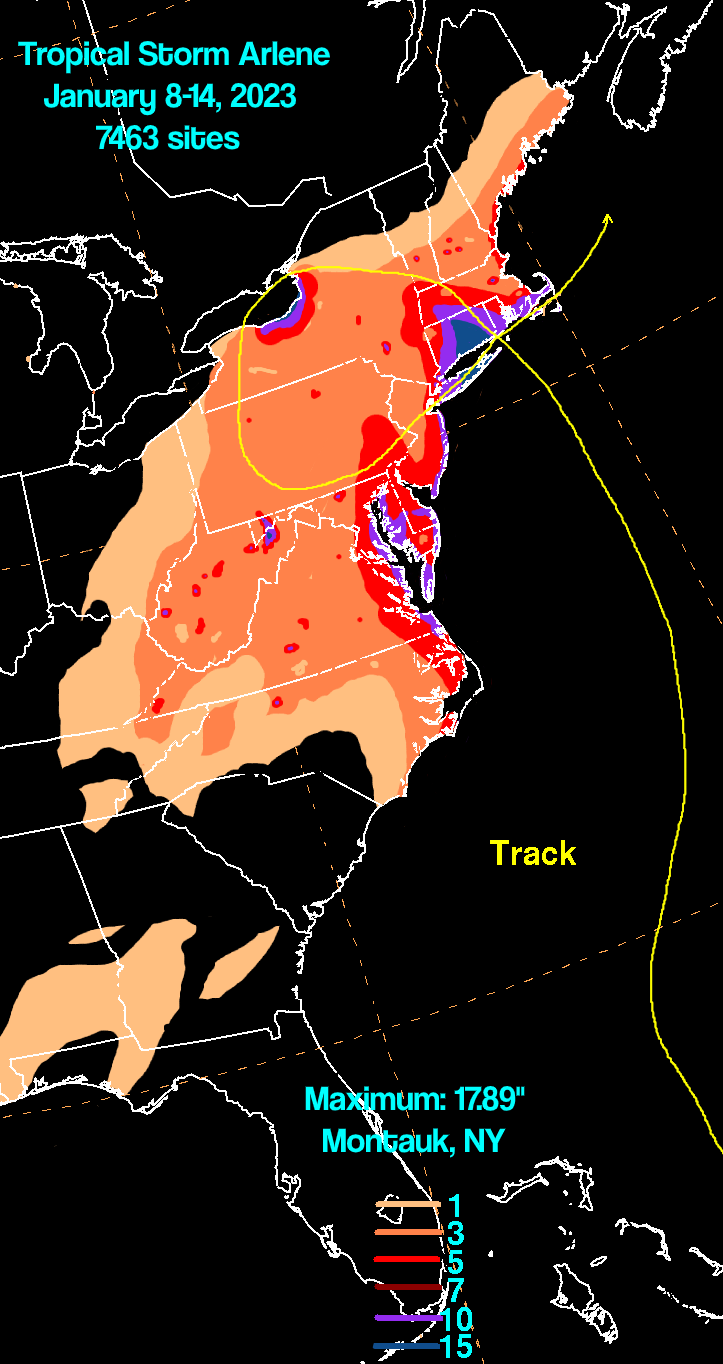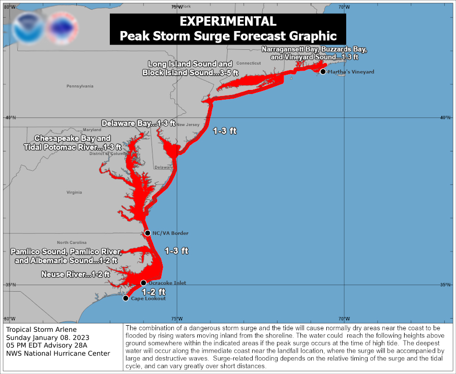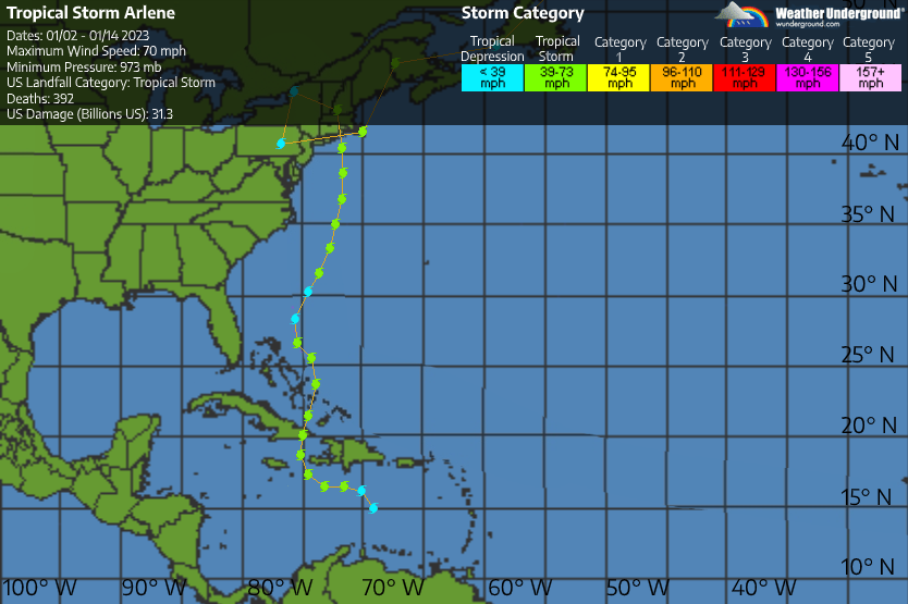 ![]() Tropical Storm Arlene making landfall in Long Island, NY on January 11th, 2023 | |